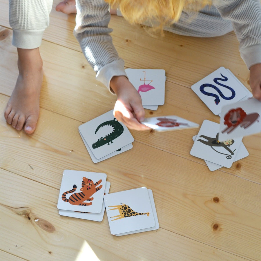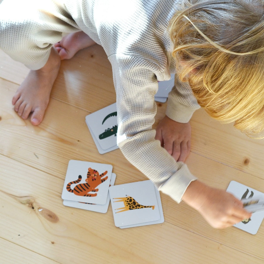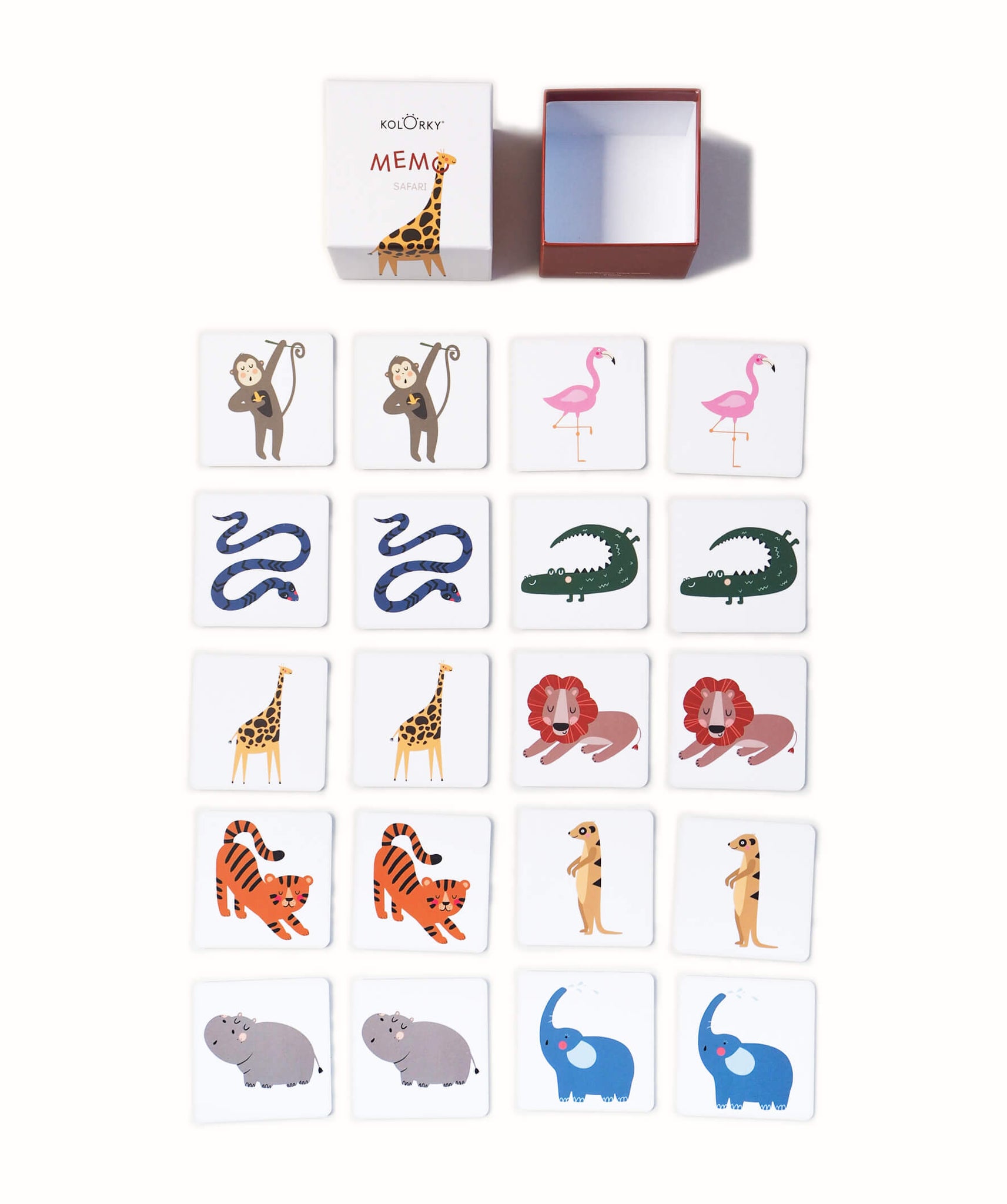 Pexeso odpowiednie dla dzieci od 2 lat ze zwierzętami o tematyce Safari - zawiera 20 kart o wymiarach 7 x 7 cm z 10 zwierzętami