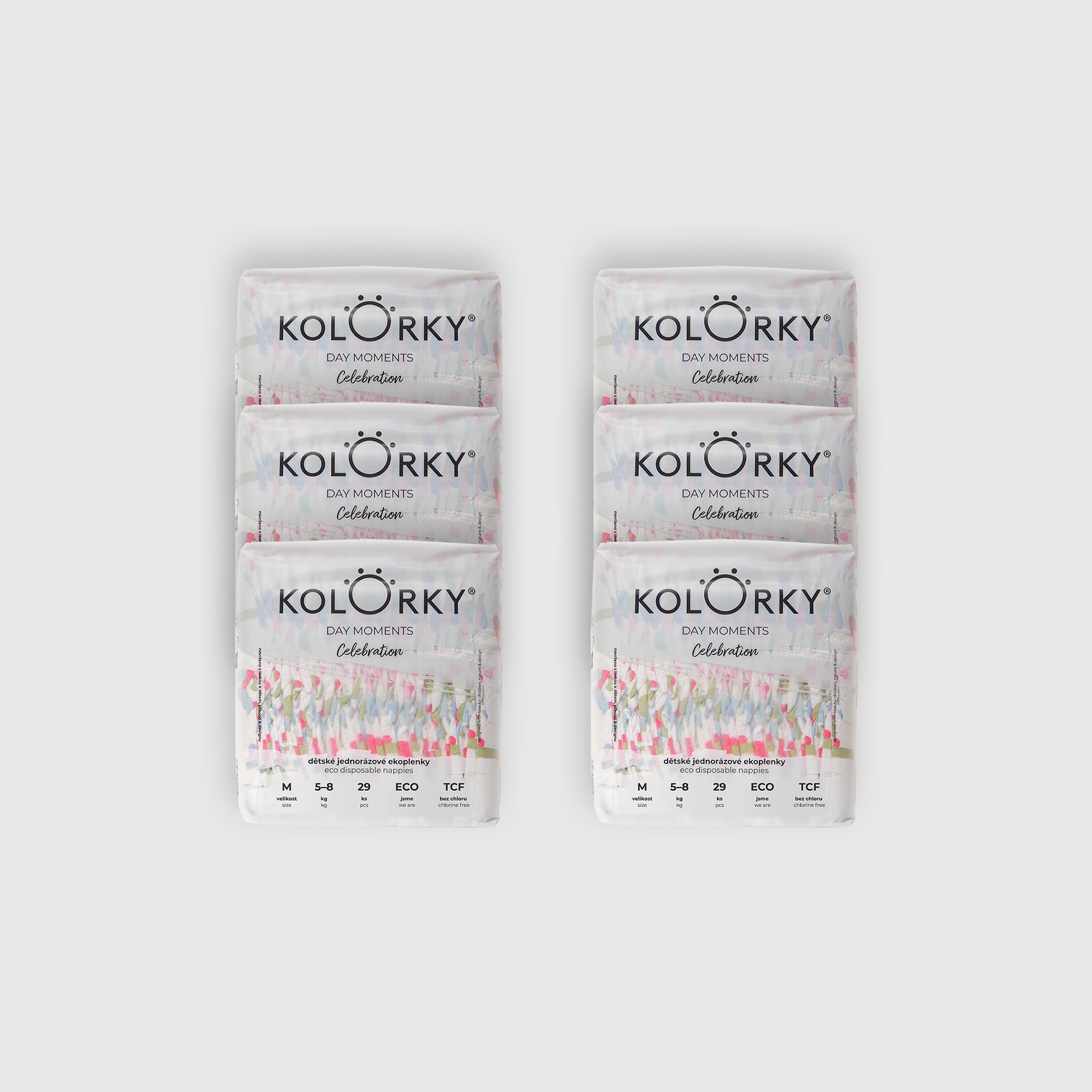 DAY MOMENTS jsou navrženy tak, aby se miminku co nejlépe přizpůsobily, nikde netlačily, byly prodyšné a vše zůstalo na svém místě. Savé jádro je tvořeno perforovanou netkanou textilií, lisovanou vrstvou buničiny a SAP gelem. Díky tomu jsou plenky velmi tenké a neomezují miminko v pohybu. Patentovaná Flash dry technologie, zajišťuje, že tekutina je rychle odvedena od miminka a pevně uzamyká v jádru nejen tekutin, ale i zápach. Absorpční kanály zajišťují, že se tekutina rozprostře po celém savém jádru a nehromadí se na jednom místě. KOLORKY tak odvedou vlhkost rychle pryč a zanechají dětskou pokožku suchou a klidnou. Samozřejmostí je indikátor vlhkosti, který vám napoví, že je miminko potřeba přebalit. Všechny naše plenky jsou dermatologicky testovány a certifikovány Státním zdravotnickým ústavem - SZÚ.