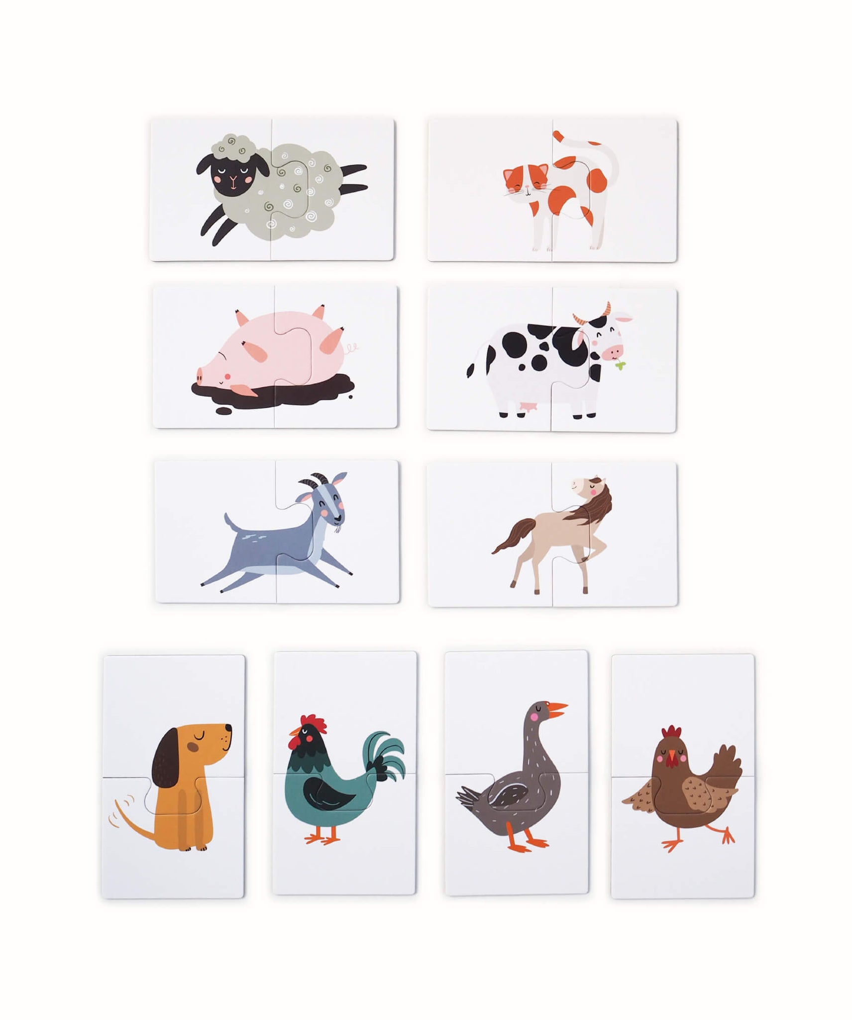 Puzzle dla dzieci od 2 lat - zawierają 10 dwuelementowych puzzli ze zwierzętami z farmy